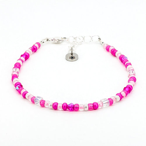 Assorted shaped glass seed beads - Blue, Pink and Green bracelet