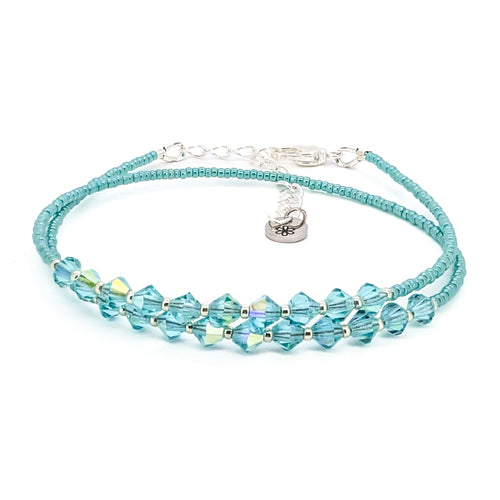 Double wrap - Bicone Crystal Bracelet - Green