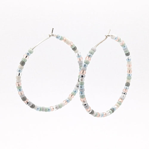 Hoop Earrings - Sterling Silver - Pale Blue, White, and Silver