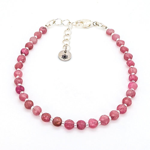 Dainty Gemstone Bracelet - October Birthstone - Pink Tourmaline in Silver
