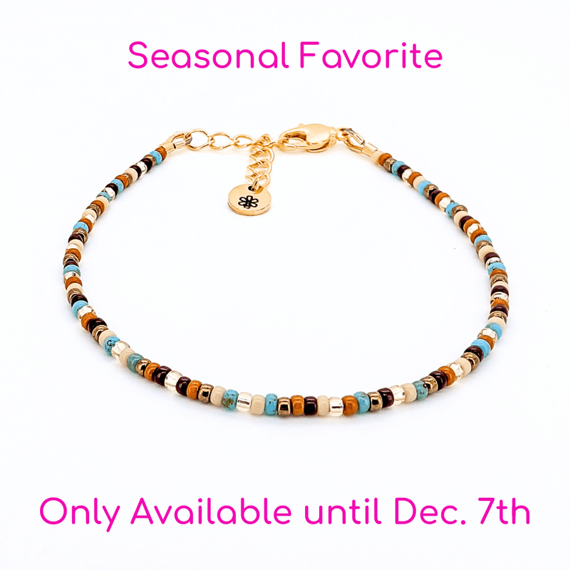 Inspired by desert sunsets, Canyon Skies combines warm earthy tones with hints of color that feel expansive and free. This dainty bracelet brings the magic of wide-open horizons to your everyday stack, a perfect reminder of nature’s beauty.