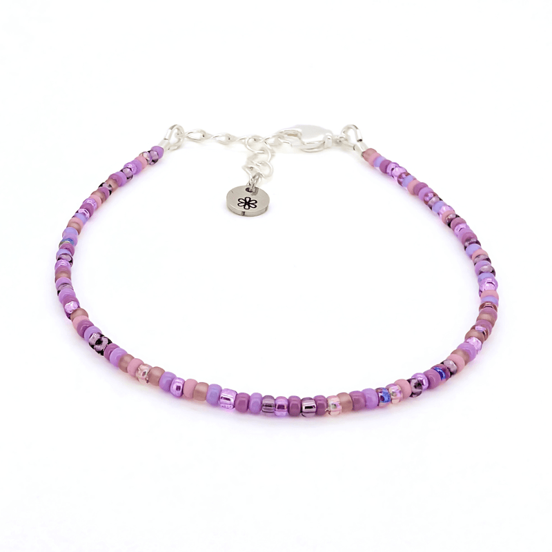 Inspired by lavender fields, this bracelet blends soft purples with a peaceful energy you’ll want to wear every day.